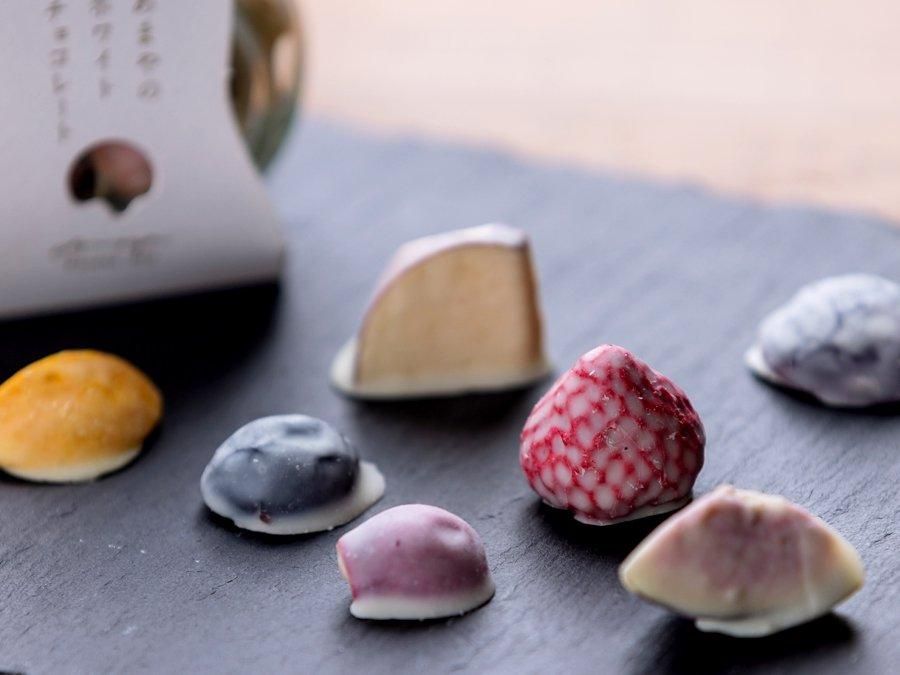 [原材料名]ぶどう(新潟県上越市産)、純チョコレート(乳成分を含む)、苺、りんご、イチジク、金柑/乳化剤(大豆由来)、バニラ香料